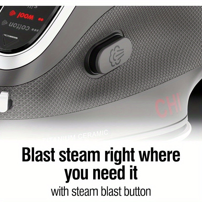 OUTSTANDING STEAM CAPACITY AT 1000 WATTS: This iron's steam strength easily tackles thick materials and persistent creases. Its compact design provides robust steam to effortlessly eliminate even the most challenging wrinkles. DIGITAL TEMPERATURE CONTROL BUTTON WITH CLEAR DISPLAY: The temperature control button allows for quick selection of fabric types, automatically adjusting the temperature to remove any uncertainty. TARGETED STEAM WHERE REQUIRED: The blast button releases