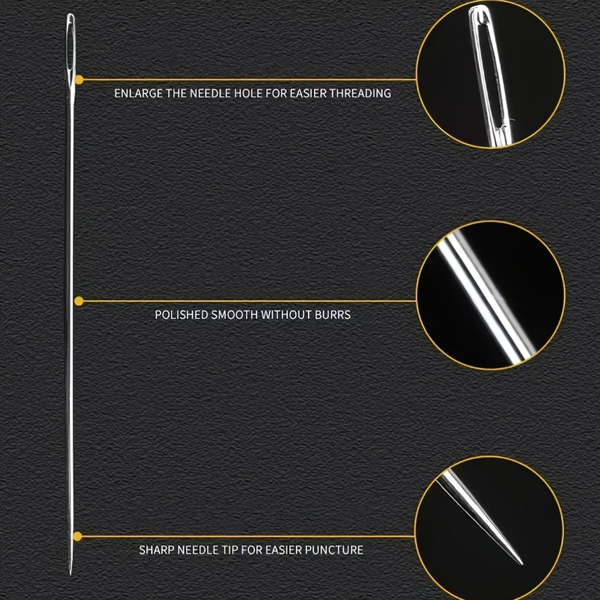 - Large-eye design makes threading quicker and easier, even with thicker threads or specialty floss, helping you save time and reduce fraying as you work on garments, crafts, and repairs.