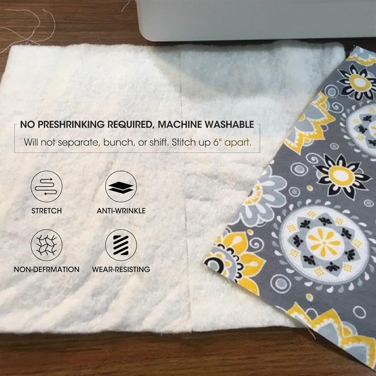 Extra Large Queen Size (59x79 Inches) Natural Cotton Batting - Extra Wide & Long Warm Soft Insulating Quilt Filling for Bedspread, Craft, Quilting - Beige/White//Black - Ideal for Modern & Traditional Bedding - Sewing & Knitt