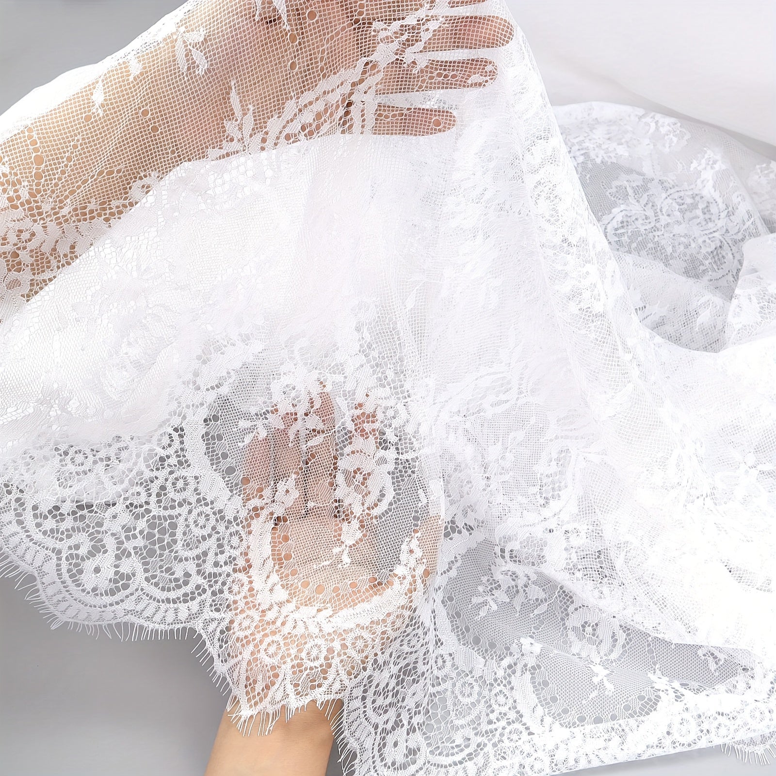 - Premium 100% nylon fabric with a soft Chantilly floral eyelash pattern that elevates wedding decor, veils, dresses, or stylish home accents.